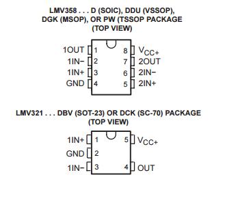 The LMV321 is available in the ultra-small DCK (SC-70) package, which is approximately one-half the size of the DBV (SOT-23) package. This package saves space on printed circuit boards and enables the design of small portable electronic devices. It also allows the designer to place the device closer to the signal source to reduce noise pickup and increase signal integrity.